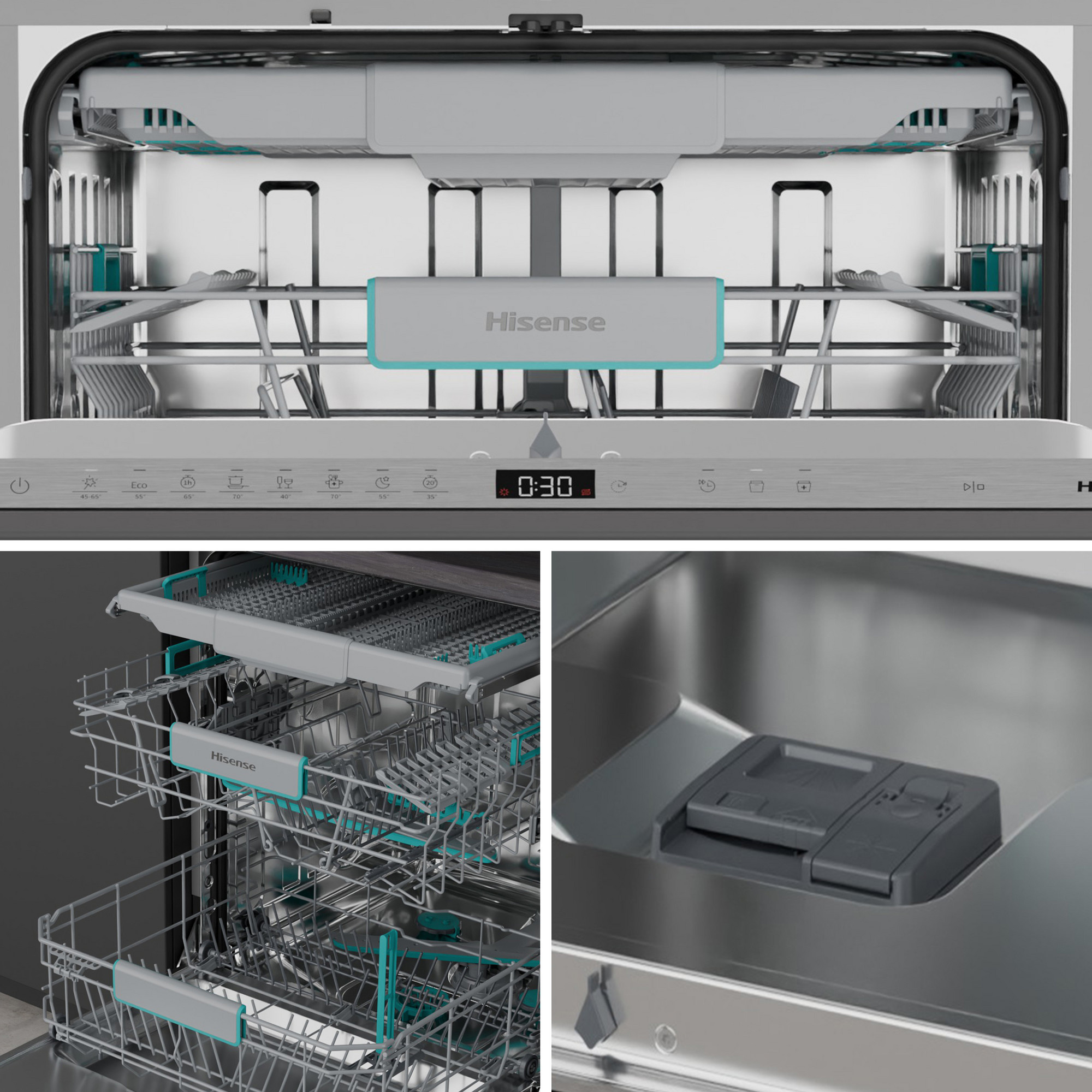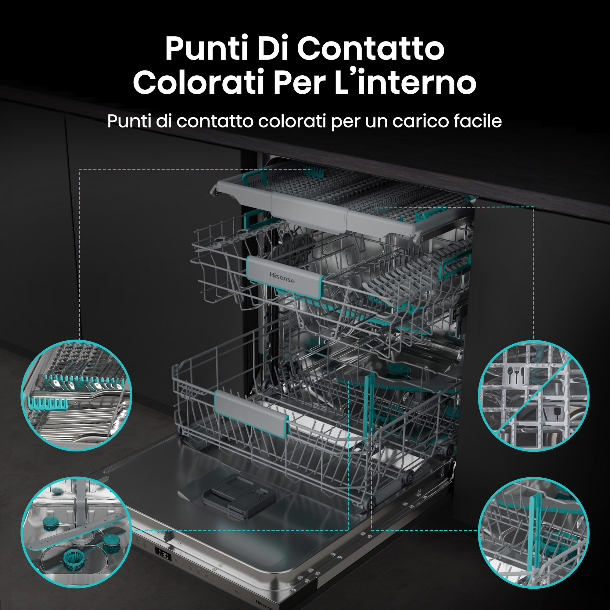 Hisense HV16A. Tipo de instalación: Completamente integrado, Talla del producto: Tamaño completo (60 cm), Tipo de control: Tocar. Número de cubiertos: 16 cubiertos, Clase de emisión de ruido: B, Nivel de ruido: 43 dB. Clase de eficiencia de energía: A, Consumo de agua por ciclo de lavado: 9,5 L, Consumo de energía por 100 ciclos: 49 kWh. Ancho: 598 mm, Profundidad: 555 mm, Altura: 816 mm. Hisense technologies (dish washing): 15 Min Quick Wash, Anti Flood Protection, AutoDry, Automatic Programme, Eco Programme, Flexible… Mostrar detalles del producto de HISENSE