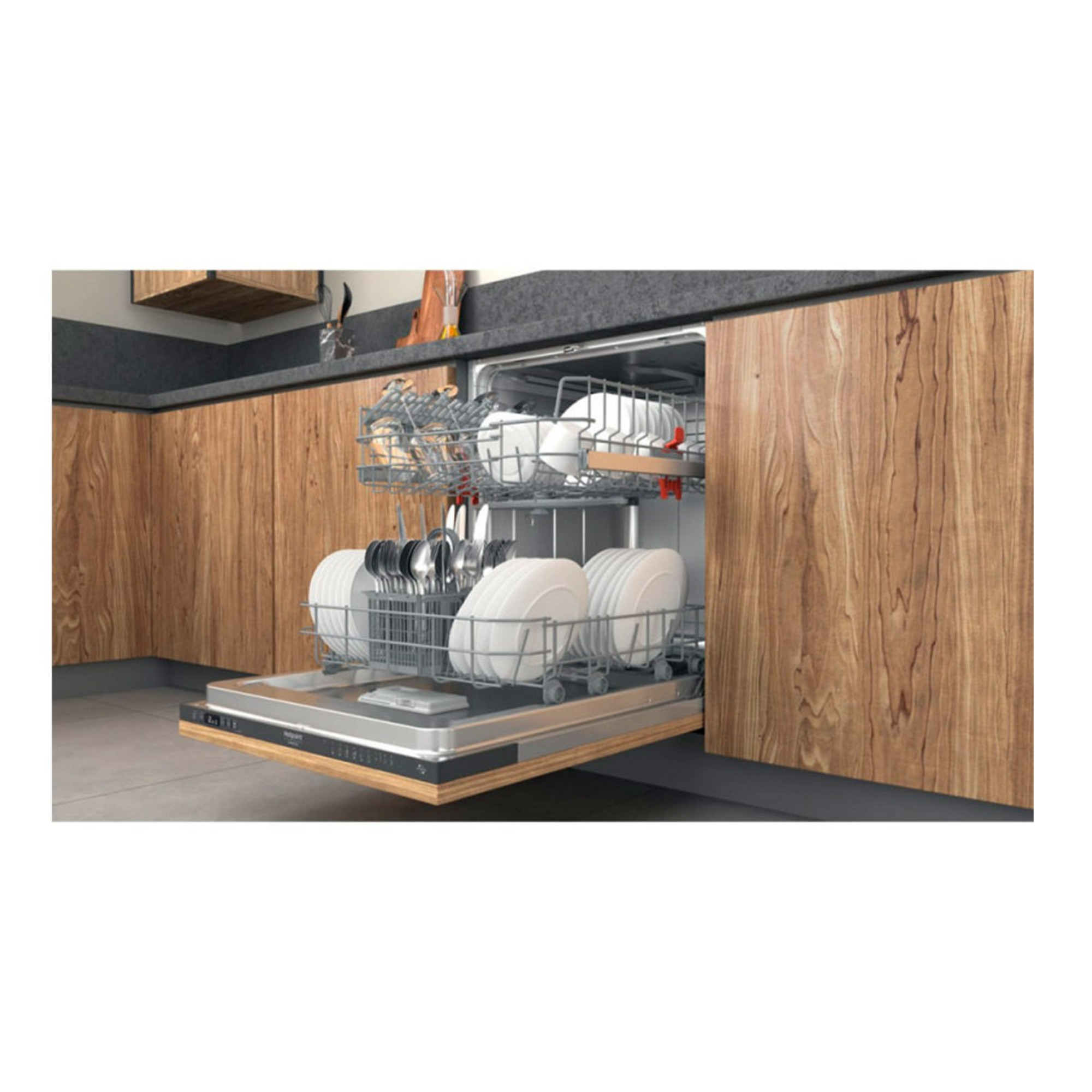 Hotpoint H2I HD526 A. Tipo de instalación: Completamente integrado, Talla del producto: Tamaño completo (60 cm), Panel de control: Negro. Número de cubiertos: 14 cubiertos, Clase de emisión de ruido: C, Nivel de ruido: 46 dB. Clase de eficiencia de energía: E, Consumo de agua por ciclo de lavado: 9,5 L, Consumo de energía por 100 ciclos: 95 kWh. Ancho: 598 mm, Profundidad: 555 mm, Altura: 820 mm. Peso del paquete: 37,5 kg
