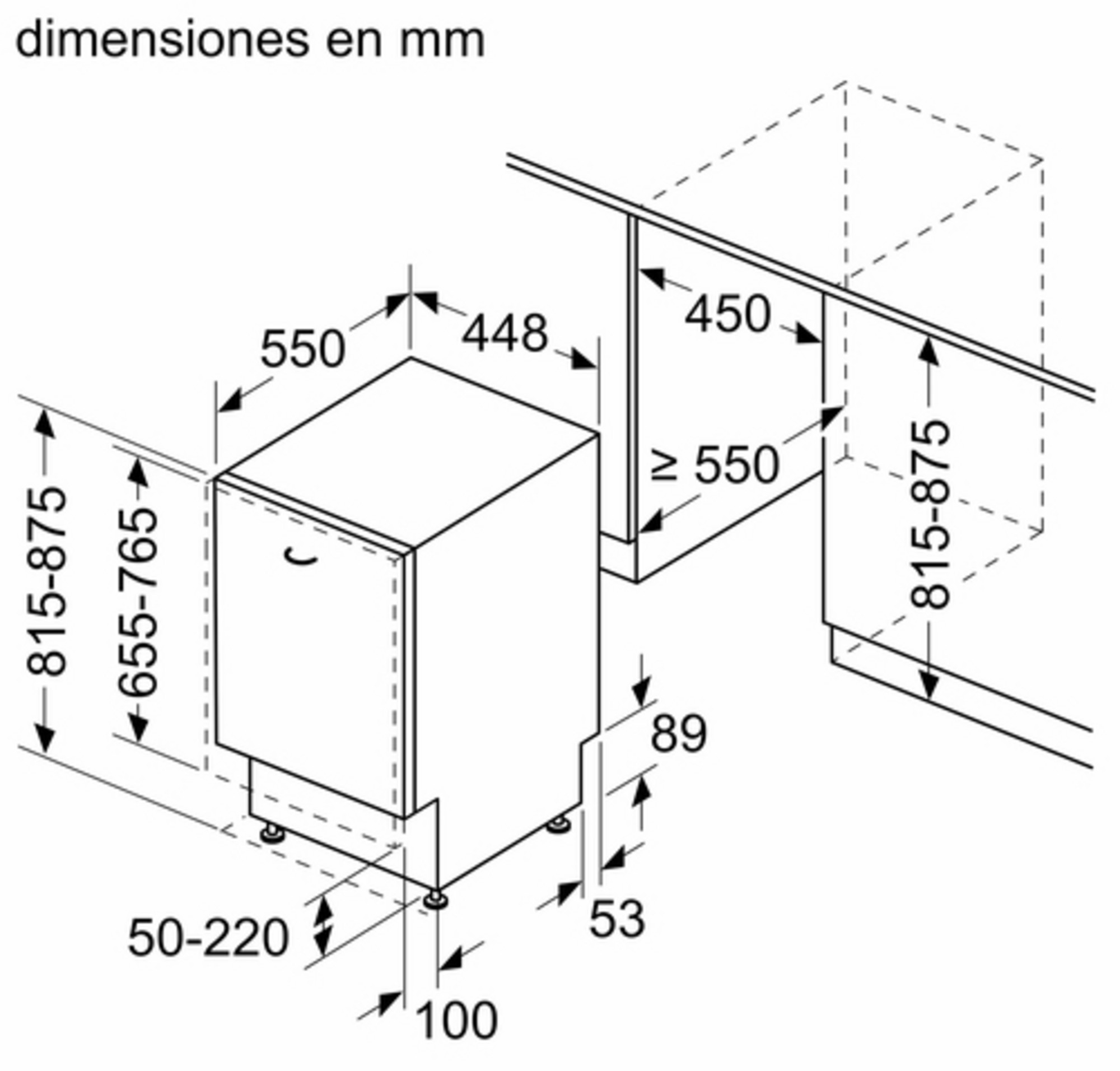 | Dimensiones hueco | 450 mm / 815 mm / 550 mm |