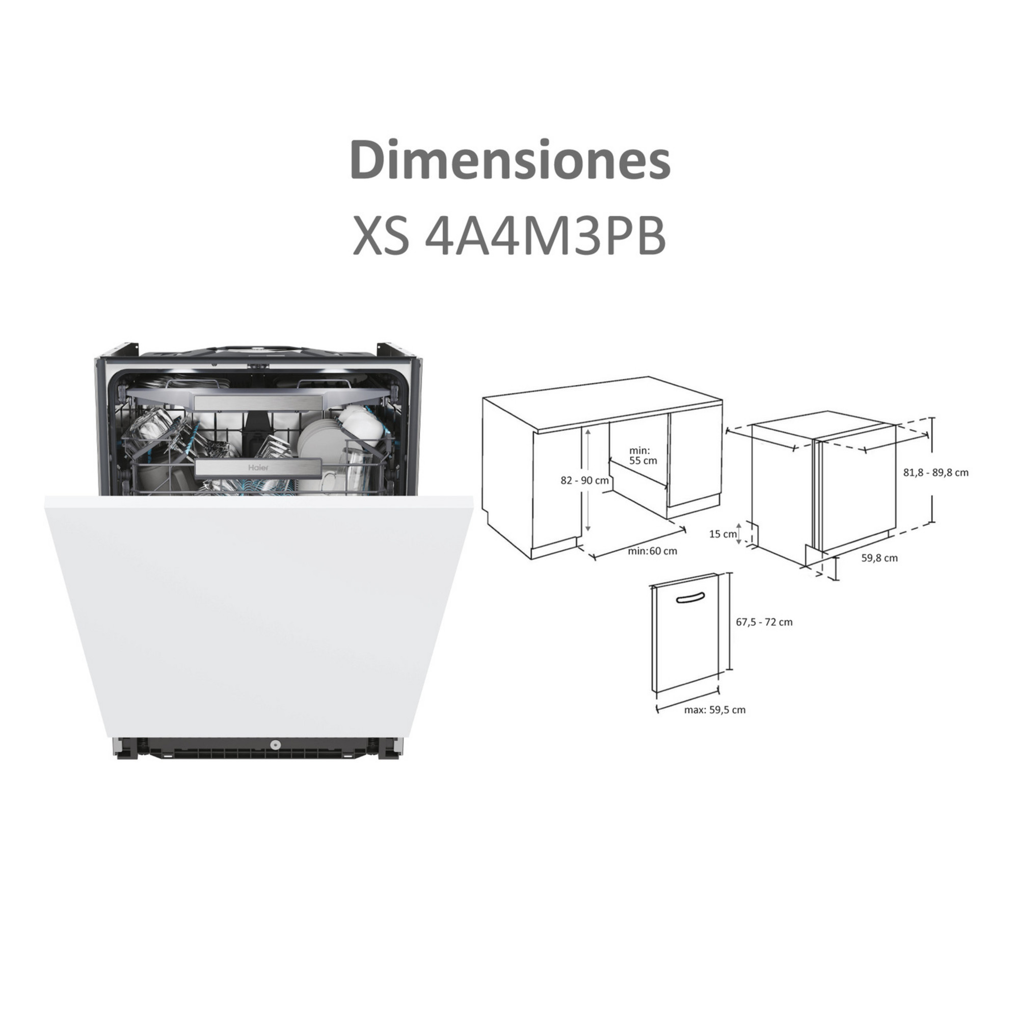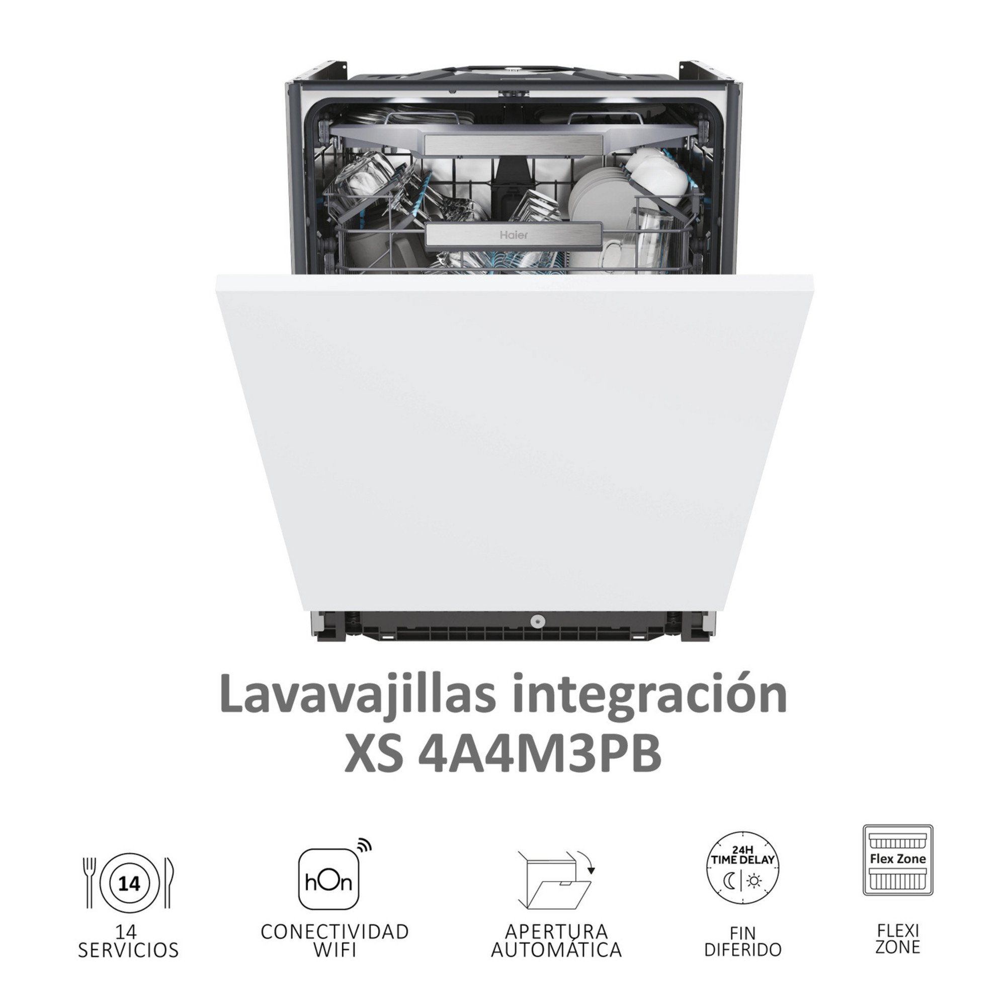 Lavavajillas integrable – Haier I-Pro Shine Series 6 XS 4A4M3PB, 14 servicios, 10 programas, 60 cm, Wi-Fi + Bluetooth, Sin panelar