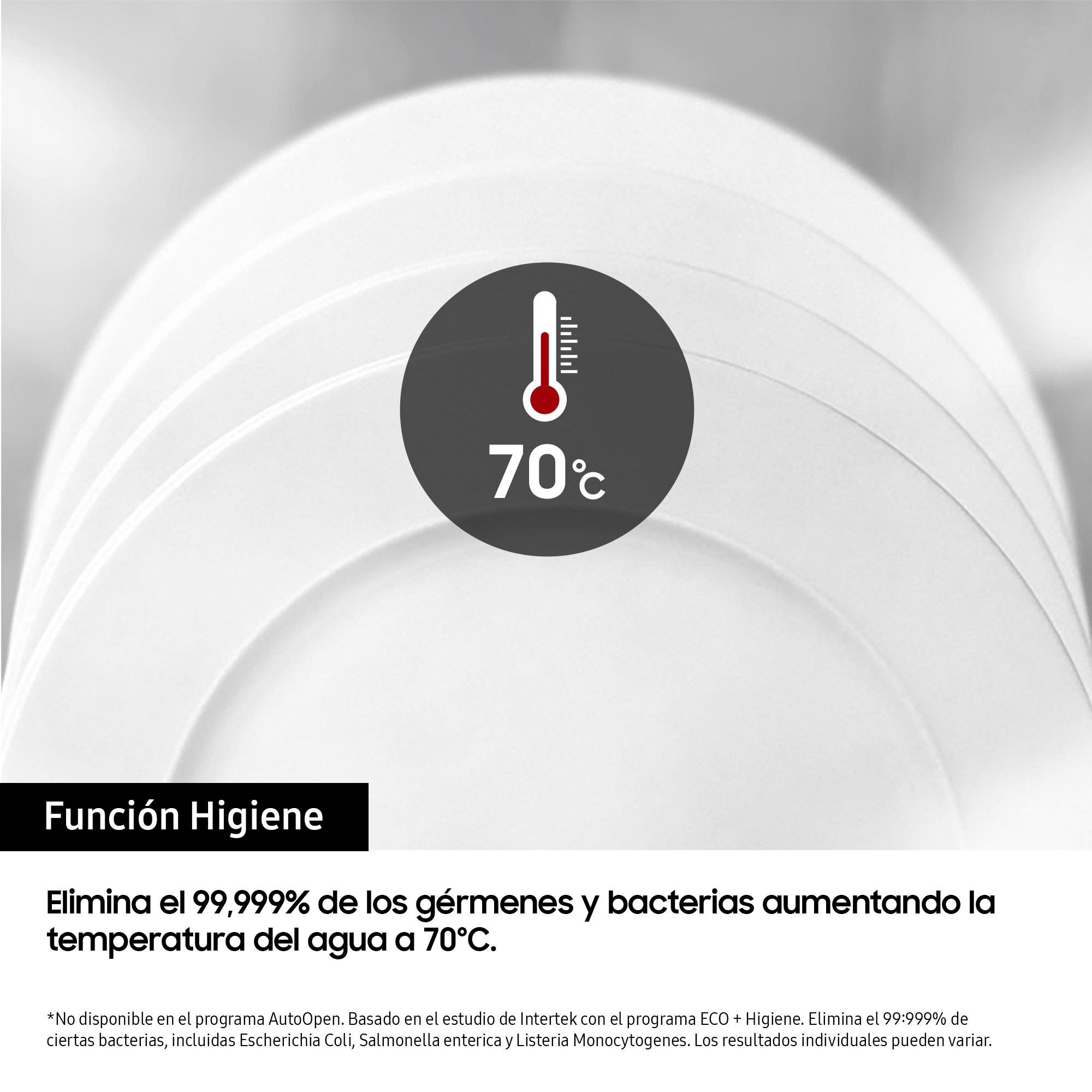 No disponbile en el programa AutoOpen. Basado en el estudio de Intertek con el programa ECO + Higiene. Elimina el 99.999% de ciertas bacterias, incluidas Escherichia Coli, Salmonella enterica y Listeria Monocytogenes. Los resultados individuales pueden variar.