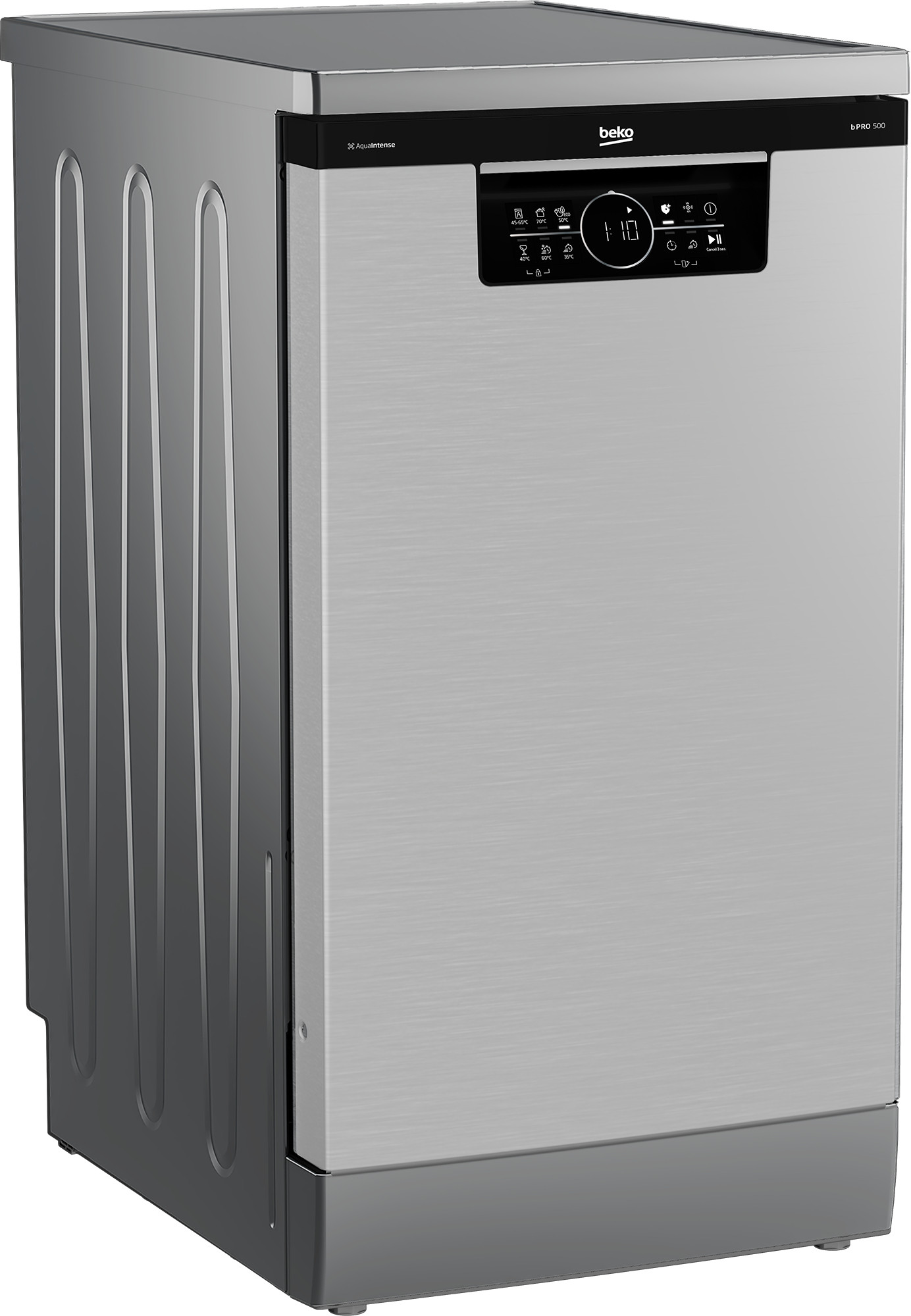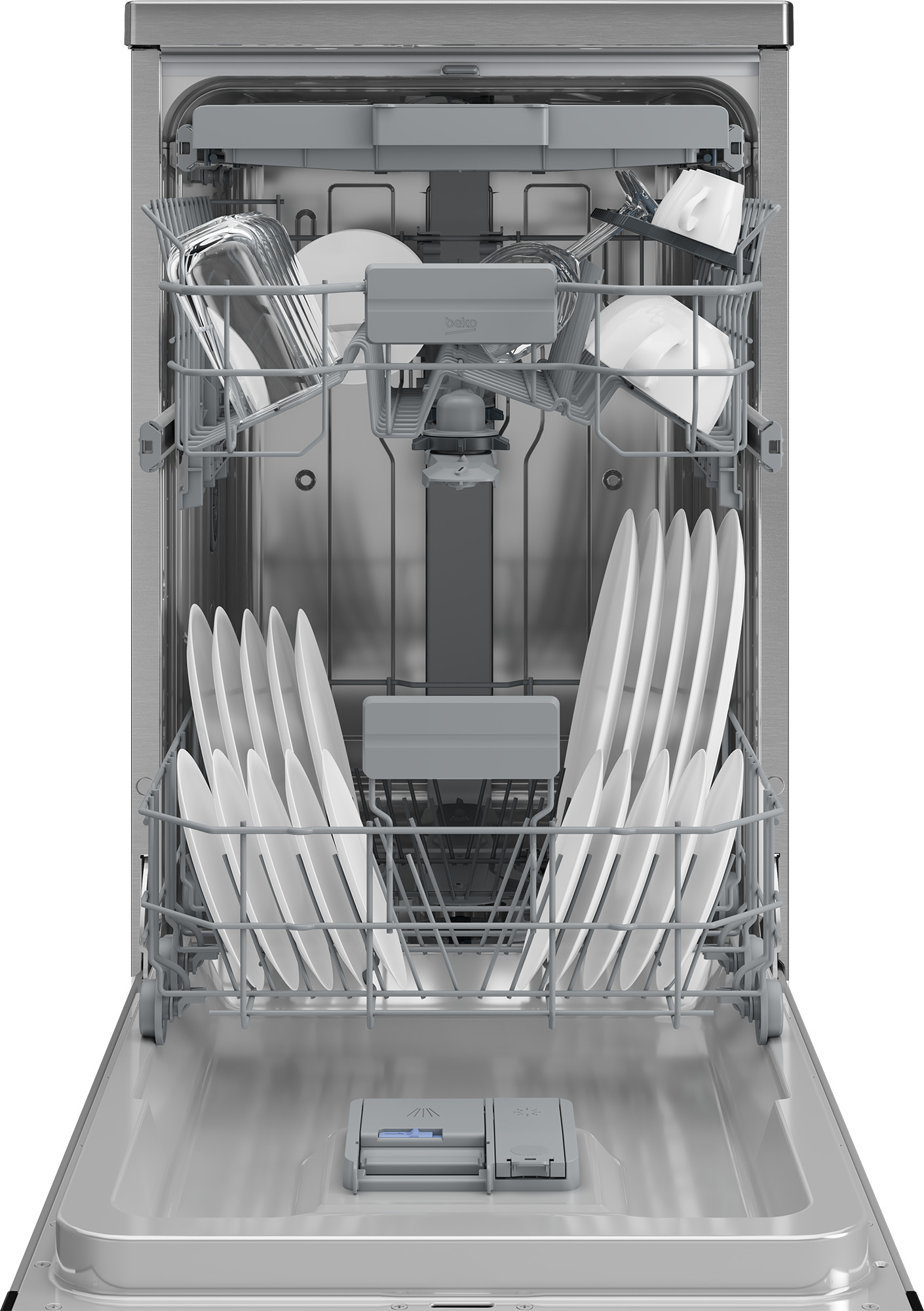 Beko BDFS26046XQ. Tipo de instalación: Independiente, Talla del producto: Estrecho (45 cm), Color de la puerta: Acero inoxidable. Número de cubiertos: 10 cubiertos, Clase de emisión de ruido: B, Nivel de ruido: 44 dB. Clase de eficiencia de energía: C, Consumo de agua por ciclo de lavado: 8,9 L, Consumo de energía por 100 ciclos: 59 kWh. Ancho: 448 mm, Profundidad: 600 mm, Altura: 850 mm. Ancho del paquete: 494 mm, Profundidad del paquete: 661 mm, Altura del paquete: 889 mm Mostrar detalles del producto de BEKO