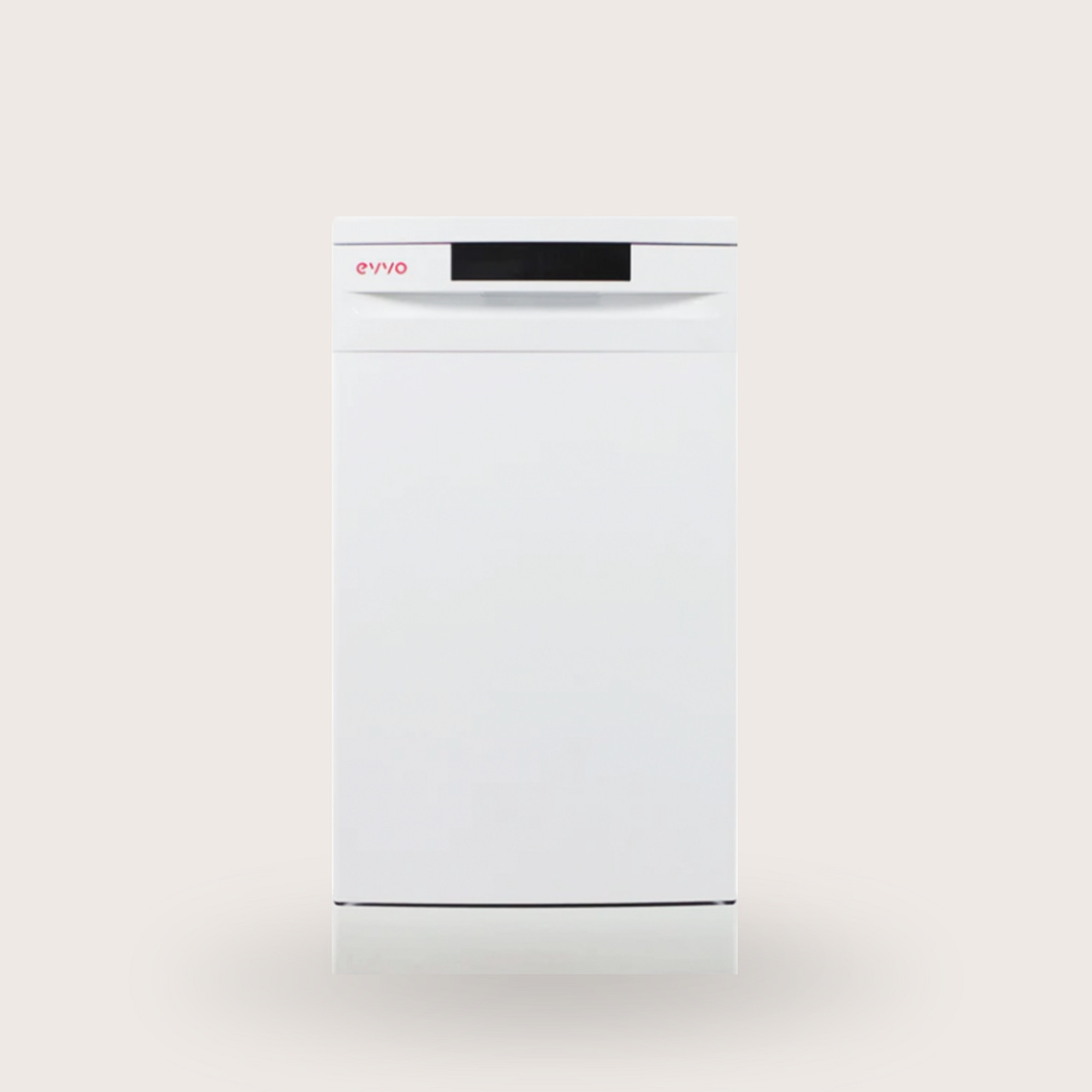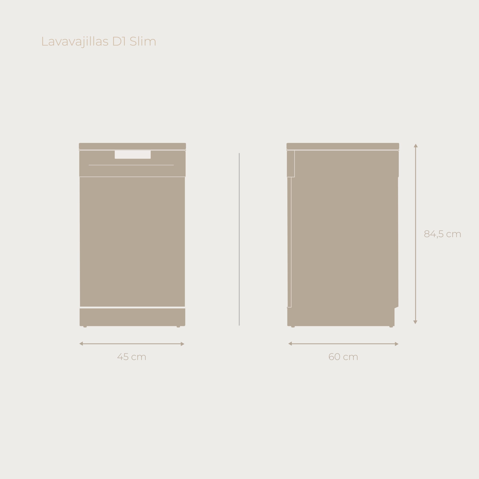 9 cubiertos | Slim – 45 cm de ancho | 5 programas | Media carga | Lavado 1 hora | Panel oculto | Programa Intensivo y ECO | Pantalla LED | Bandeja superior ajustable | Color: Blanco | Eficiencia energética E | Medidas (alto x ancho x fondo): 84,5 x 44,8 x 60 (cm)