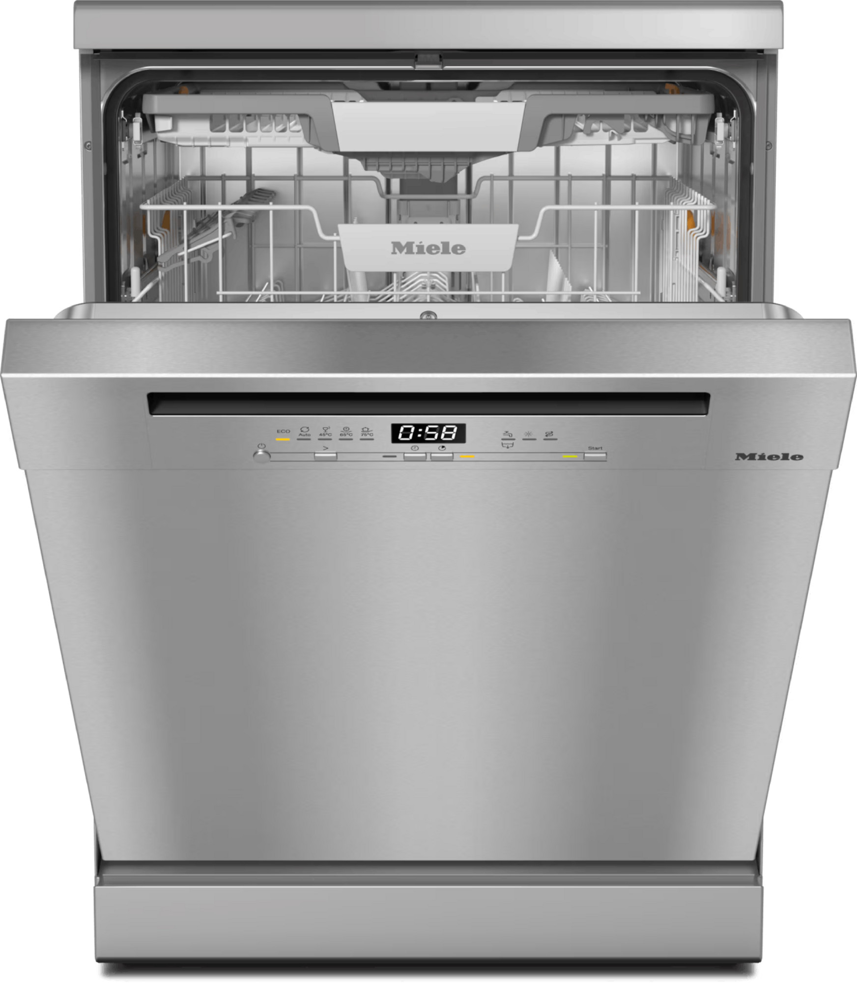 El Miele G 5811 SC Front Active Plus está diseñado para cuidar tu vajilla siendo al mismo tiempo respetuoso con los recursos. Sus programas optimizados ajustan el consumo de agua y la temperatura según la carga y el nivel de suciedad, contribuyendo a una mayor eficiencia energética en tu hogar. Así disfrutas de una vajilla perfectamente limpia mientras mantienes bajo control tu consumo habitual y colaboras en la protección del medio ambiente.