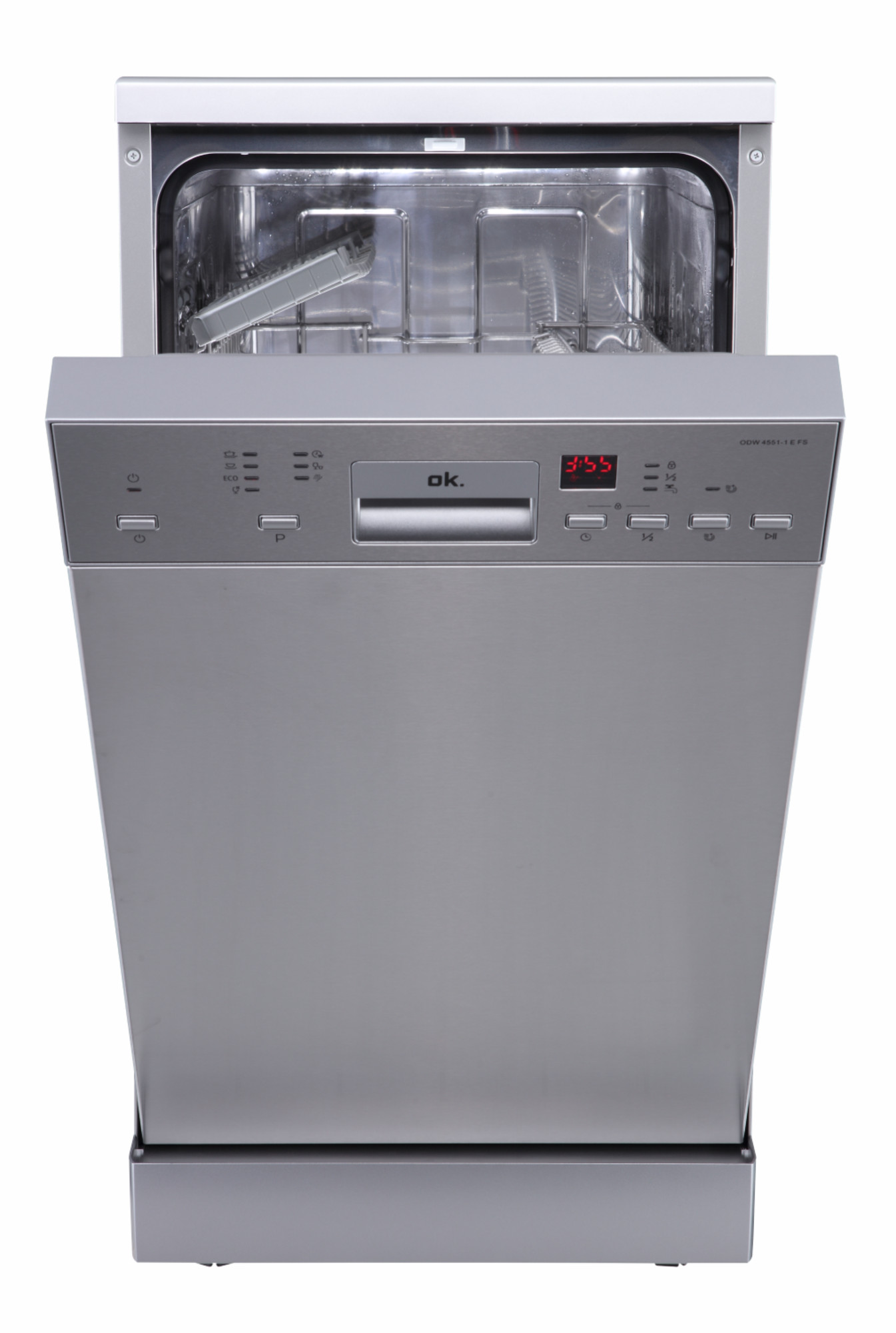 Con el lavavajillas independiente ODW 4551-1 E FS, lavar los platos se convierte en algo sencillo. Gracias a sus siete programas diferentes, entre ellos Eco, Cristal, Rápido e Intensivo, siempre encontrarás el ciclo de lavado adecuado para tu día a día. El innovador secado por calor residual garantiza que tu vajilla esté lista para usar inmediatamente después del lavado. Con capacidad para hasta 10 servicios, hay espacio suficiente incluso para familias o fiestas en pisos compartidos. ¡Disfruta de resultados brillantes sin ningún esfuerzo!