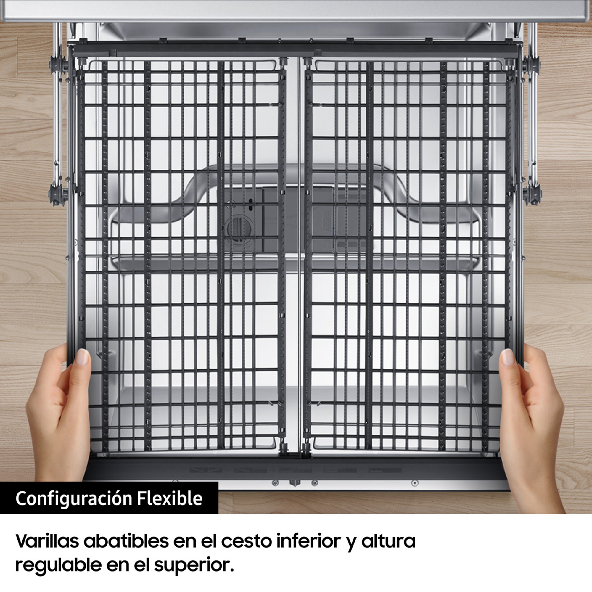 Varillas abatibles en el cesto inferior y altura regulable en el superior.