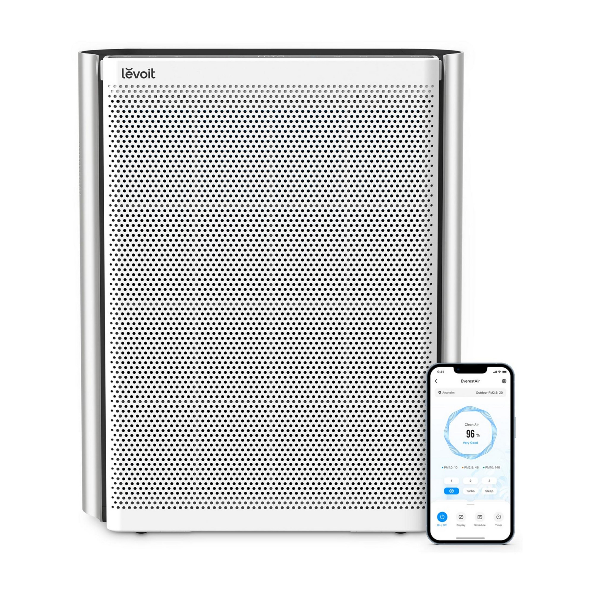 El Levoit EverestAir es un purificador de aire innovador que utiliza la tecnología AirSight Plus™ 2.0 para proporcionar mediciones precisas de la calidad del aire. Con capacidad para purificar espacios grandes hasta 130 m², ofrece una purificación potente y silenciosa con la tecnología VortexAir 3.0 y un sistema de filtración de 3 etapas que elimina alérgenos y partículas no deseadas del aire. Además, cuenta con un prefiltro lavable para facilitar el mantenimiento y garantizar noches de sueño reparador con niveles de ruido bajos. Con control remoto a través de la aplicación VeSync y compatibilidad con control de voz, el EverestAir™ es conveniente de ajustar desde cualquier lugar, y su diseño moderno se adapta a cualquier estilo de hogar. Disfruta de un aire limpio y fresco mientras mejoras la calidad de vida en tu hogar con Levoit EverestAir™.