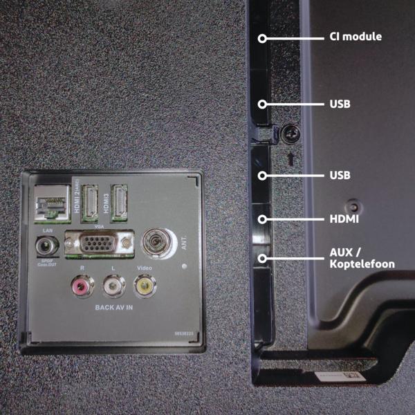 Salora SMART40TV. Diagonal de la pantalla: 101,6 cm (40″), Resolución de la pantalla: 1920 x 1080 Pixeles, Tipo HD: Full HD, Tecnología de visualización: LED, Forma de la pantalla: Plana, Tipo de retroiluminación LED: Direct-LED. Smart TV. Tecnología de interpolación de movimiento: BPR (Best Picture Rate) 100 Hz, Brillo de pantalla: 250 cd / m², Tiempo de respuesta: 9,5 ms, Razón de contraste (típica): 5000:1. Formato de señal digital: DVB-C, DVB-T2. Wifi, Ethernet. Color del producto: Negro