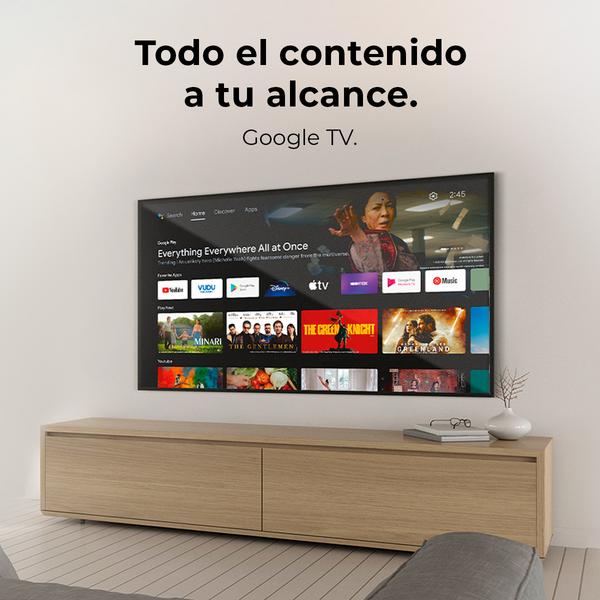 A4 series ALU40043 Resolución 4K UHD: vive una experiencia de usuario única con una resolución óptima. Google TV: dispone de la versión más eficaz del sistema operativo de Google TV. Procesador CORTEX A55: disfruta de un procesador eficiente que mejora la experiencia de usuario en el televisor. Chromecast: envía rápidamente todo el contenido que desees desde cualquier otro dispositivo. Google Voice Assistant: maneja tu televisor usando solamente tu voz. Sistema Dolby Audio: sumérgete en tu contenido favorito con el sonido envolvente de tu televisor. HDR10: consigue mayor profundidad y luminosidad en tus imágenes, gracias a su pantalla de 10 bits. Fácil conectividad: conéctate de la manera más sencilla a tu televisor con cualquier dispositivo con bluetooth. Frameless: el último diseño rompedor e innovador sin marcos. Meeting Mode: conéctate rápidamente a reuniones gracias al fácil acceso que proporciona esta modo. 16 Gb de ROM: guarda todas tus aplicaciones y otros archivos gracias a su gran capacidad de almacenamiento. HDMI 2.1: permite altas frecuencias y resoluciones sin dañar la imagen de origen. USB 3.0: reduce tiempos de transmisión de datos con su alta velocidad. 2 pilas AAA,Mando a distancia,Manual,Televisión LED 43” UHD.