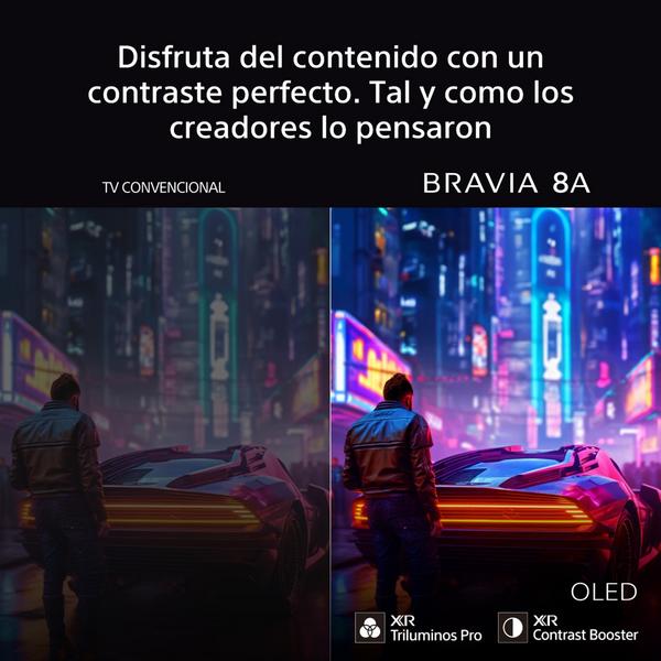 BRAVIA 8A con 8 millones píxeles autoiluminados ofrece negros profundos, contrastes prácticamente infinitos y colores vibrantes para un realismo impresionante en cada escena. Es compatible con Dolby Vision, HDR10, HLG e IMAX Enhanced. La tecnología XR Triluminos Pro reproduce más de mil millones de tonos para obtener colores naturales y precisos.
