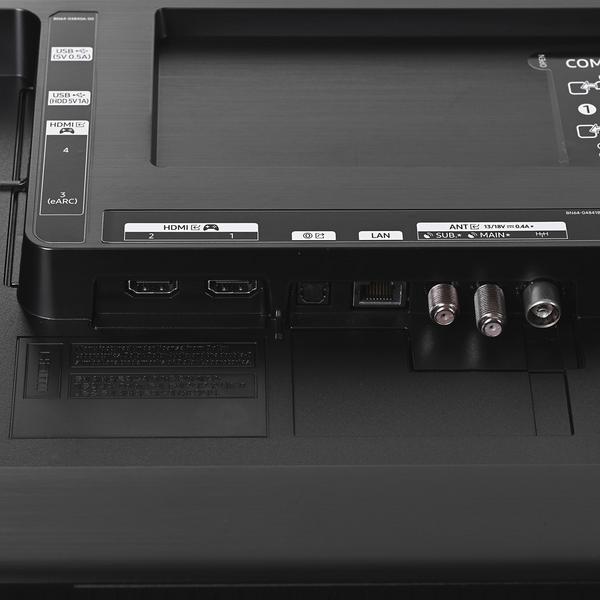 | Conexiones | 2x DVB-T2CS2, 1x LAN, 1x Sintonizador analógico, 1x CI (Interfaz común), 1x HbbTV 2.0.3, 2x USB-A, 1x Entrada RF (Terrestre, Cable, satélite), 1x (Uso común terrestre), 1x Salida Audio Digital (Óptica) |