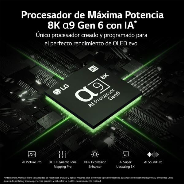 Máximo rendimiento con el único procesador creado para la tecnología LG OLED evo 8K a9 Gen6 con IA.