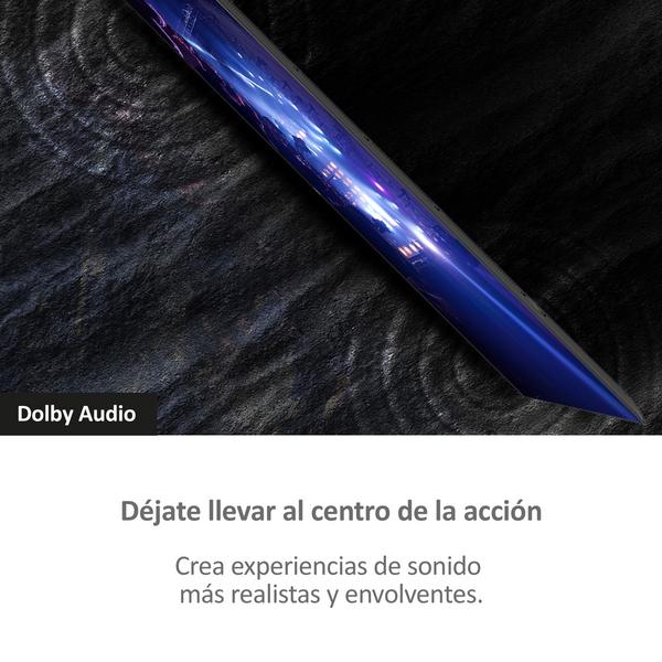 El sistema de audio multicanal con Dolby Audio ofrece una experiencia envolvente, con voces nítidas y efectos sonoros mejor definidos. Ideal para disfrutar de películas, series, conciertos y videojuegos con mayor profundidad y claridad sonora.