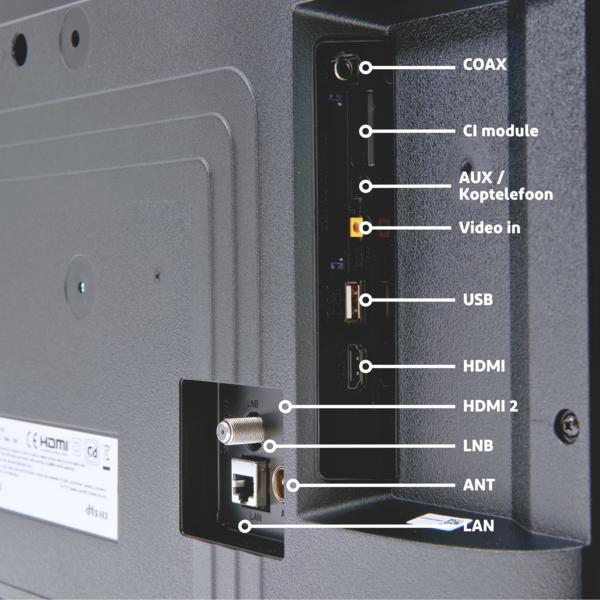 Salora QLED32TV. Diagonal de la pantalla: 81,3 cm (32″), Resolución de la pantalla: 1920 x 1080 Pixeles, Tipo HD: Full HD, Tecnología de visualización: QLED, Forma de la pantalla: Plana, Tipo de retroiluminación LED: Direct-LED. Smart TV. Tecnología de interpolación de movimiento: BPR (Best Picture Rate) 100 Hz, Brillo de pantalla: 200 cd / m², Tiempo de respuesta: 9,5 ms, Razón de contraste (típica): 3000:1. Formato de señal digital: DVB-C, DVB-S, DVB-S2, DVB-T2. Wifi, Ethernet. Color del producto: Negro