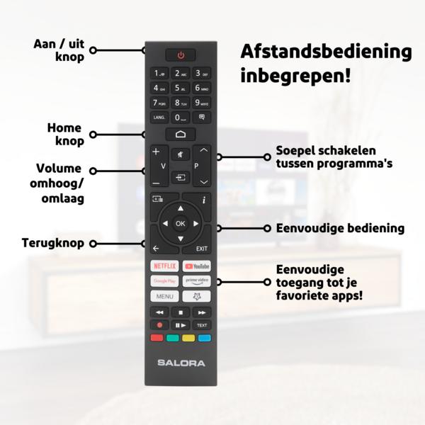 TV QLED – SALORA QLED32TV, Full-HD, Smart TV, Negro