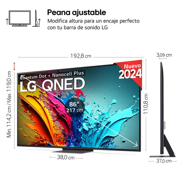 TV QNED 86″ – LG 86QNED86T6A.AEU, UHD 4K, Procesador Inteligente 4K α8, Smart TV, DVB-T2 (H.265), Negro