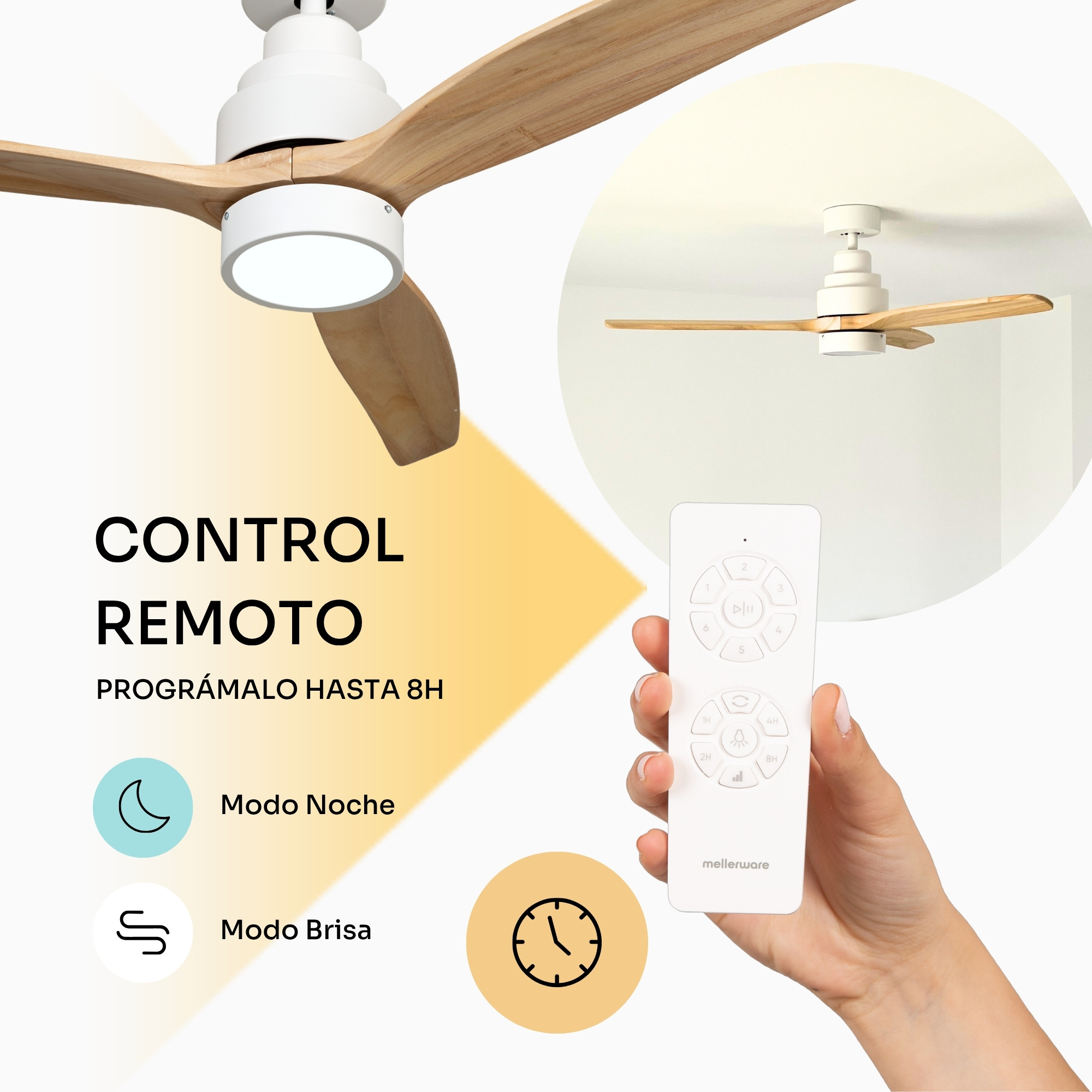 Ventilador de Techo – MELLERWARE Brizy! Bright, 45 W, 6 velocidades, Madera Clara