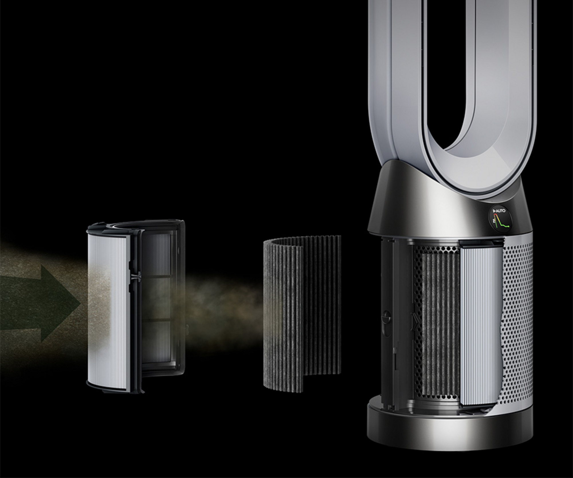 Purificación inteligente con sensores en tiempo real El purificador Dysondetecta, diagnostica e informa sobre la calidad del aire gracias a sus sensores inteligentes. La pantalla LCD integrada muestra en tiempo real la presencia de gases y partículas en tu hogar. Control total desde la app MyDyson Con la aplicación MyDyson, puedes supervisar la calidad del aire, programar horarios y controlar el dispositivo desde cualquier lugar. Tecnología Air Multiplier™ La avanzada tecnología Air Multiplier™genera un potente flujo de aire para purificar rápidamente toda la habitación. Climatización y purificación durante todo el año Calienta en invierno, refresca en verano y purifica el aire los 365 días del año, proporcionando un ambiente limpio y confortable siempre. Oscilación de 350° para cobertura total El purificador cuenta con una oscilación personalizada de hasta 350°, lo que permite dirigir el flujo de aire exactamente hacia donde se necesite. Modo Auto con ajuste inteligente Detecta automáticamente contaminantes como PM2.5y PM10(partículas microscópicas en suspensión que pueden afectar la salud respiratoria) y ajusta el caudal de aire para mantener una calidad óptima en el ambiente.PM2.5se refiere a partículas finas de hasta 2.5 micras, como humo, hollín y alérgenos; PM10incluye partículas más grandes como polvo, pólen o esporas. Modo nocturno silencioso Ideal para dormir, el modo nocturnomonitoriza el aire usando configuraciones silenciosas y apaga la pantalla para no interferir con el descanso. Mantenimiento sencillo de filtros Recibe recordatorios automáticos sobre el cambio de filtros. El proceso es rápido, fácil y sin complicaciones.