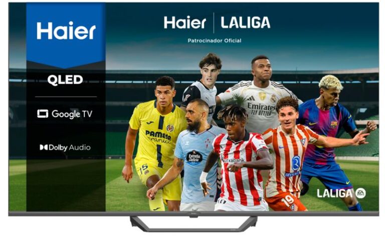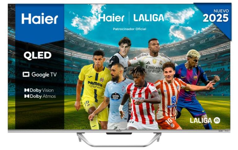 TV QLED 65″ – Haier S80 Series H65S80FUX, Smart TV (Google TV), 4K HDR10, 4x HDMI 2.1, Sonido 44W, Dolby Audio, Negro