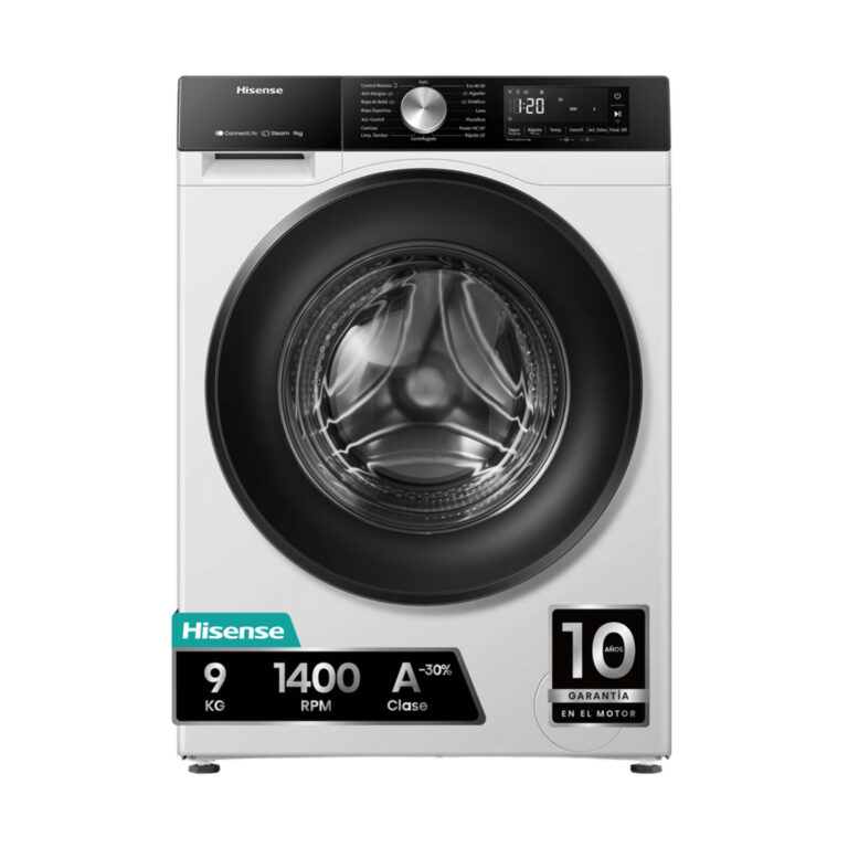 Lavadora carga frontal – Hisense WF3S1043BW3, 10 kg, 1400 rpm, 19 programas, A-20%, WiFi, Blanco