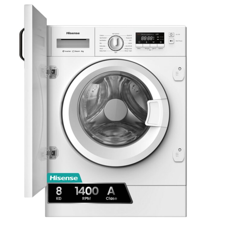 Lavadora integrable – Hisense WF3M841BWIES, 8 kg, 1400 rpm, 15 programas, Secado Allergy Care, Clase A, Sin Panelar