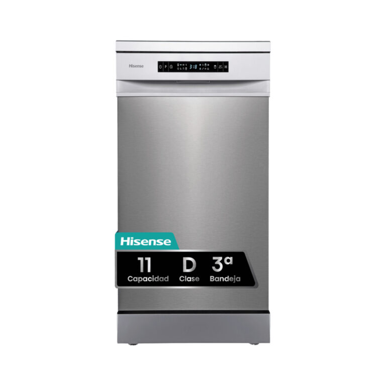 Lavavajillas – Hisense HS543D10X, 11 servicios, 8 programas , 44.8 cm, Motor Inverter, Tercera bandeja, Inox